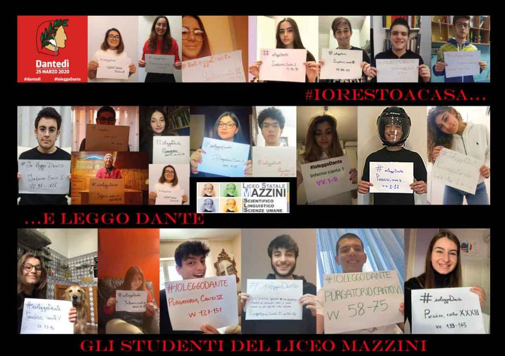 Gli alunni di Maria Clementina Marrazzo della scuola media statale Criscuolo di Pagani hanno realizzato una “lectura dantis” al tempo del coronavirus. Gli alunni hanno scelto alcune terzine del poema dantesco, affidandole ad un messaggio registrato ed inviato alla propria insegnante. Di qui una raccolta capace di suscitare emozioni inaspettate: il contagio virale aiuta il contagio poetico ossia la riscoperta della poesia come strumento privilgiato delle nostre emozioni.