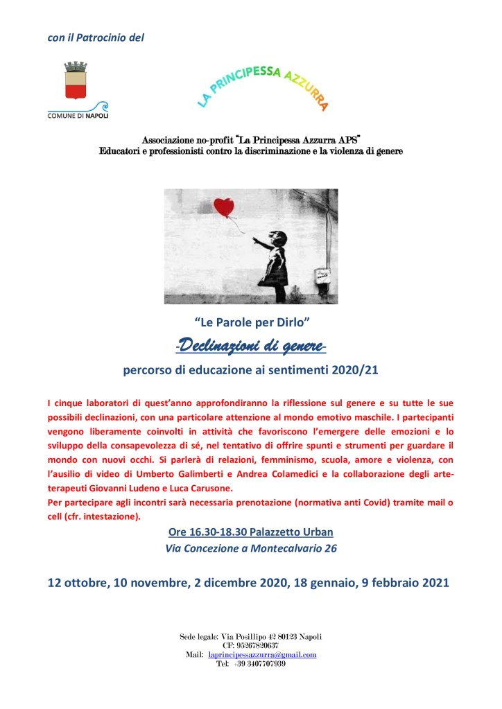 Eccoci di nuovo al nastro di partenza per il nostro appuntamento annuale: il percorso di educazione ai sentimenti aperto a tutti, gratuito, patrocinato dal Comune di Napoli e ospitato nella bella struttura del Palazzetto Urban.