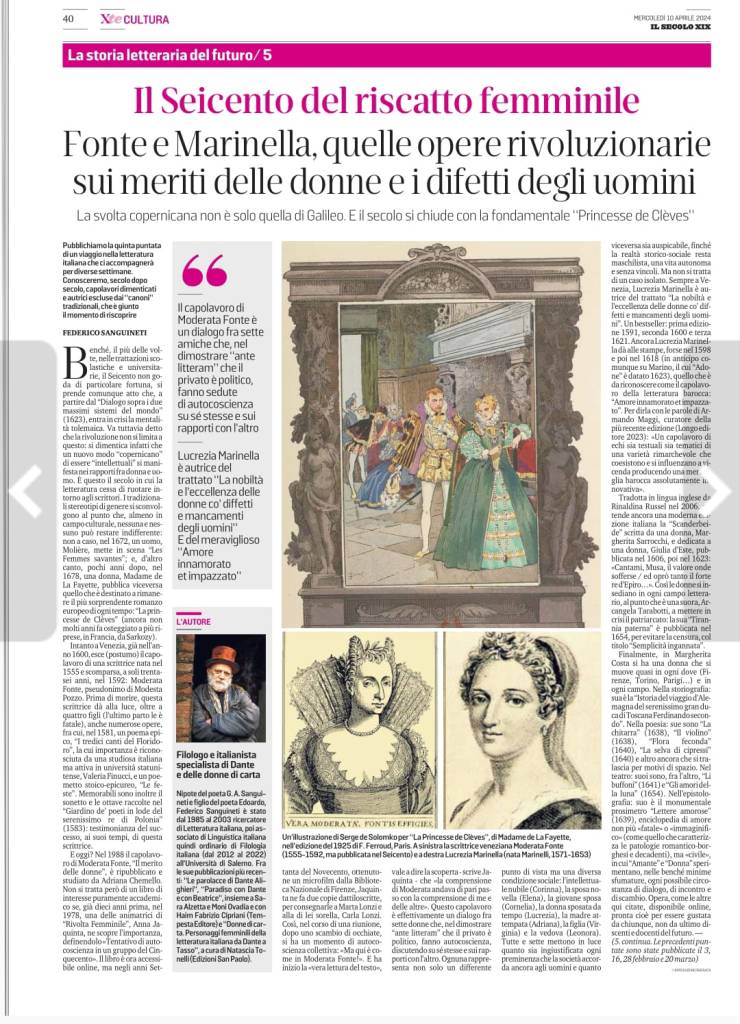In questo articolo Federico Sanguineti, noto studioso e dantista, offre un ulteriore contributo nell’ambito di una battaglia che conduce da anni contro una tradizione letteraria di stampo maschilista e patriarcale, determinata ad escludere qualsiasi contributo femminile. A partire da tale considerazione, quindi, anche in questo caso, l’obiettivo è quello di intervenire su false ed inamovibili convinzioni dimostrando, attraverso nomi ed opere, l’esistenza, sin dal Seicento, di un’importante letteratura al femminile ignorata dai più per non dire da tutti.