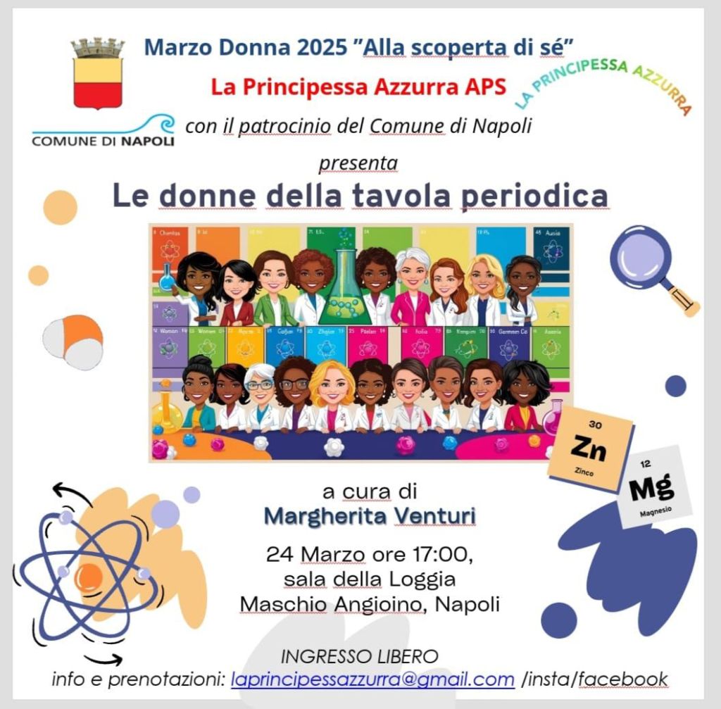 L’evento “Le donne della tavola periodica” svoltosi il 24 Marzo 2025 nella suggestiva Sala della Loggia del Maschio Angioino, a cura della prof. Margherita Venturi, docente presso l’Università di Bologna, organizzato dalla prof Raffaella Del Litto, ha rappresentato un momento speciale del Marzo Donna del Comune di Napoli.